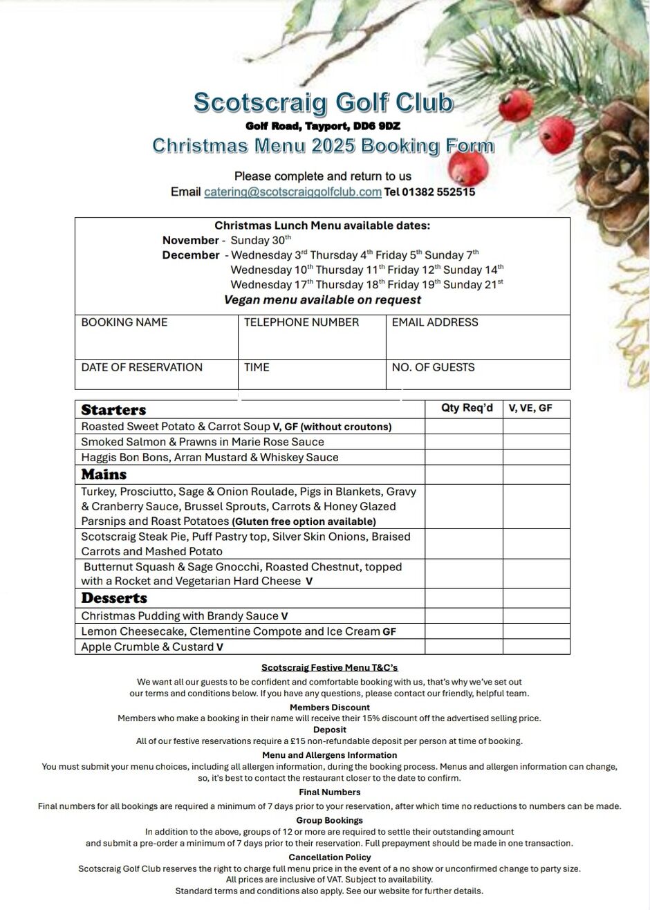 Our Festive Lunch Menu is available on Sunday 30th November and